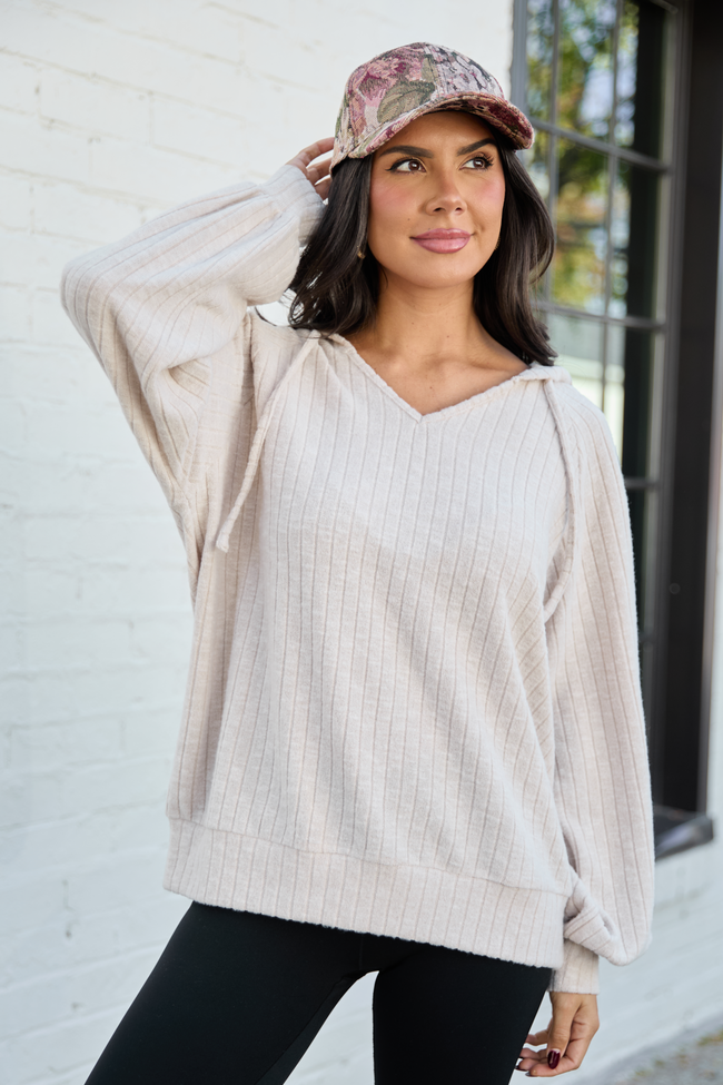 Be the first to review “Baylor Beige Balloon Sleeve Ribbed Hoodie”