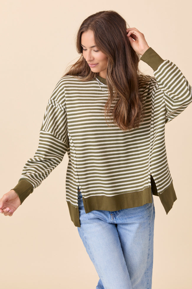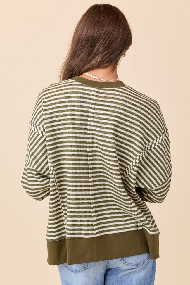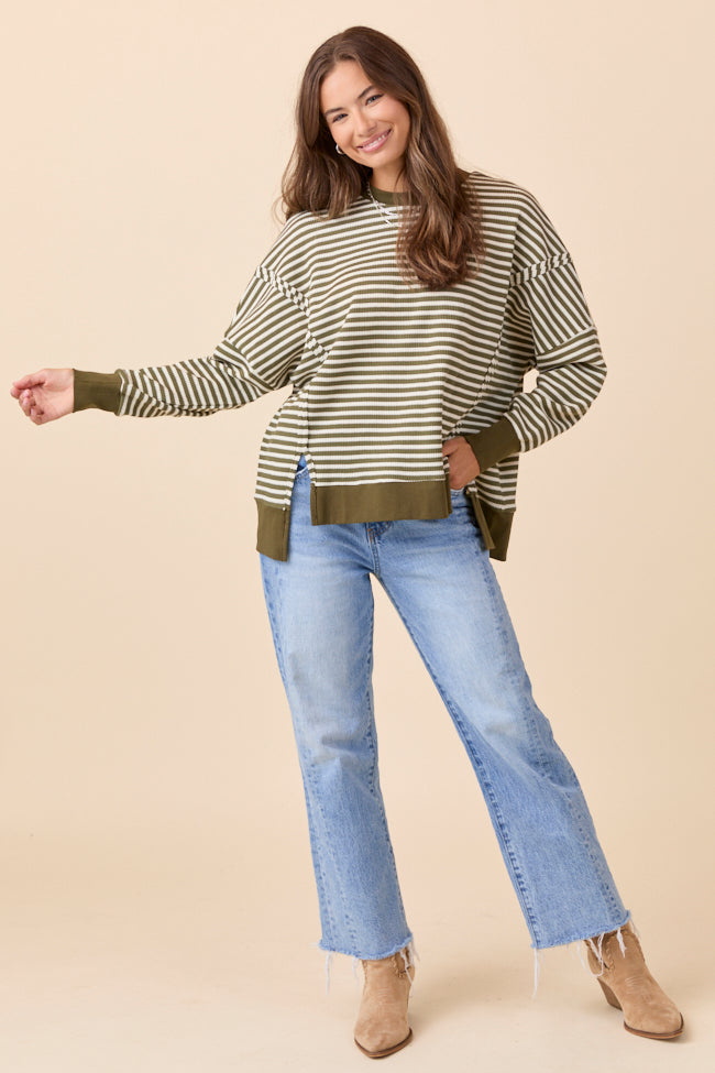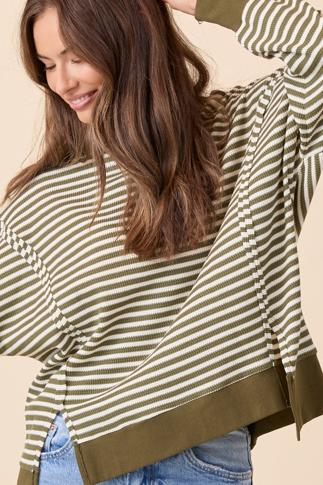 Kara Green Stripe Waffle Pullover