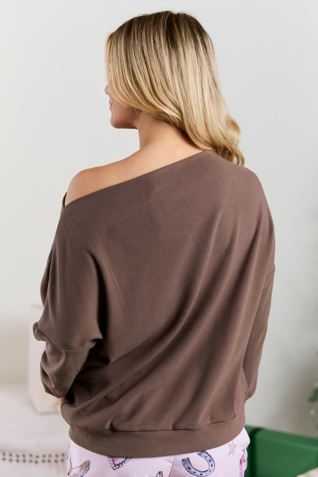 Zoe Brown Slouchy Off the Shoulder Knit Top