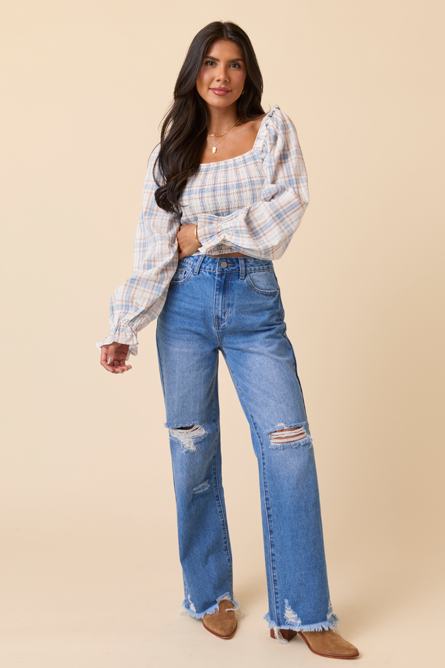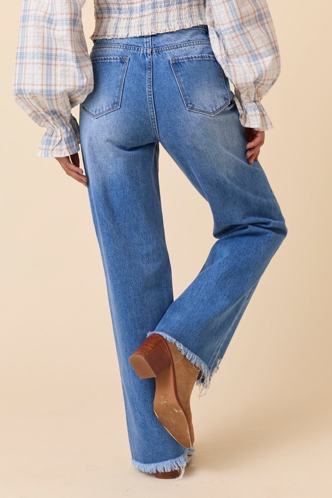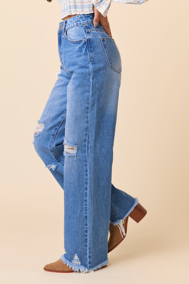 Ariel Medium Wash Distressed Wide Leg Jeans