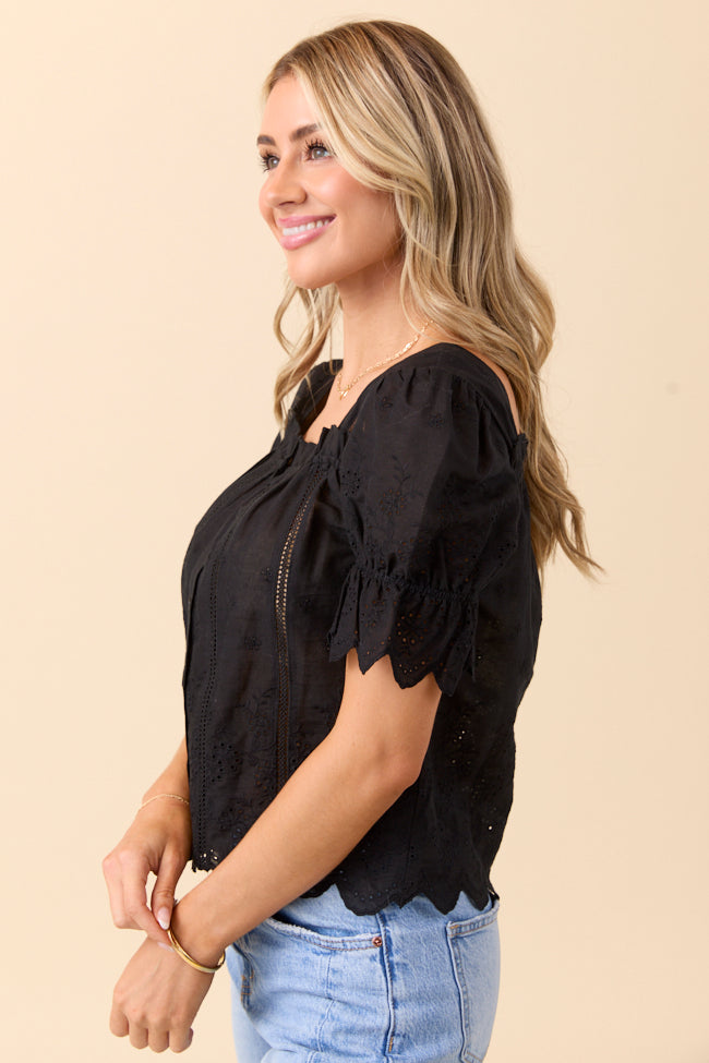 Be the first to review “Michelle Black Eyelet Puff Sleeve Top”