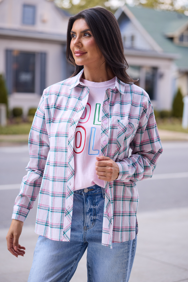 Be the first to review “Rory Pink And Green Holiday Plaid Flannel Top”